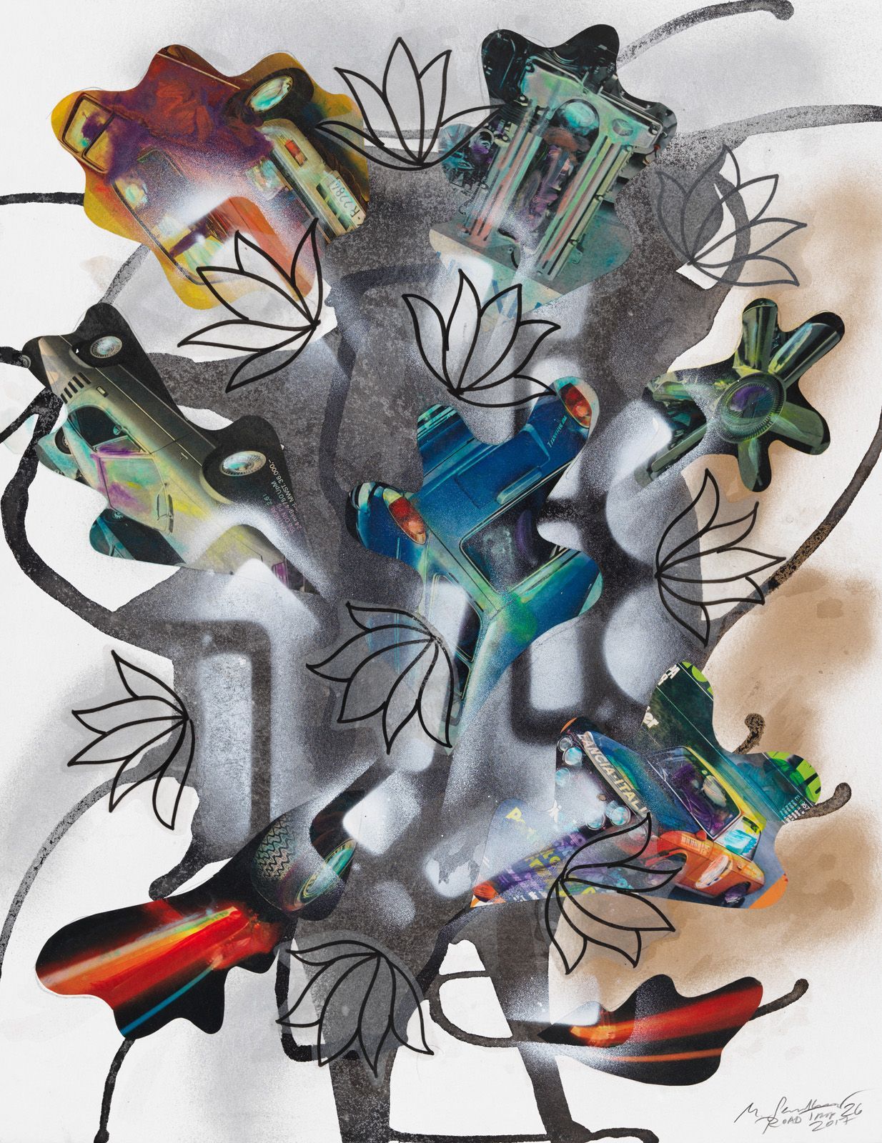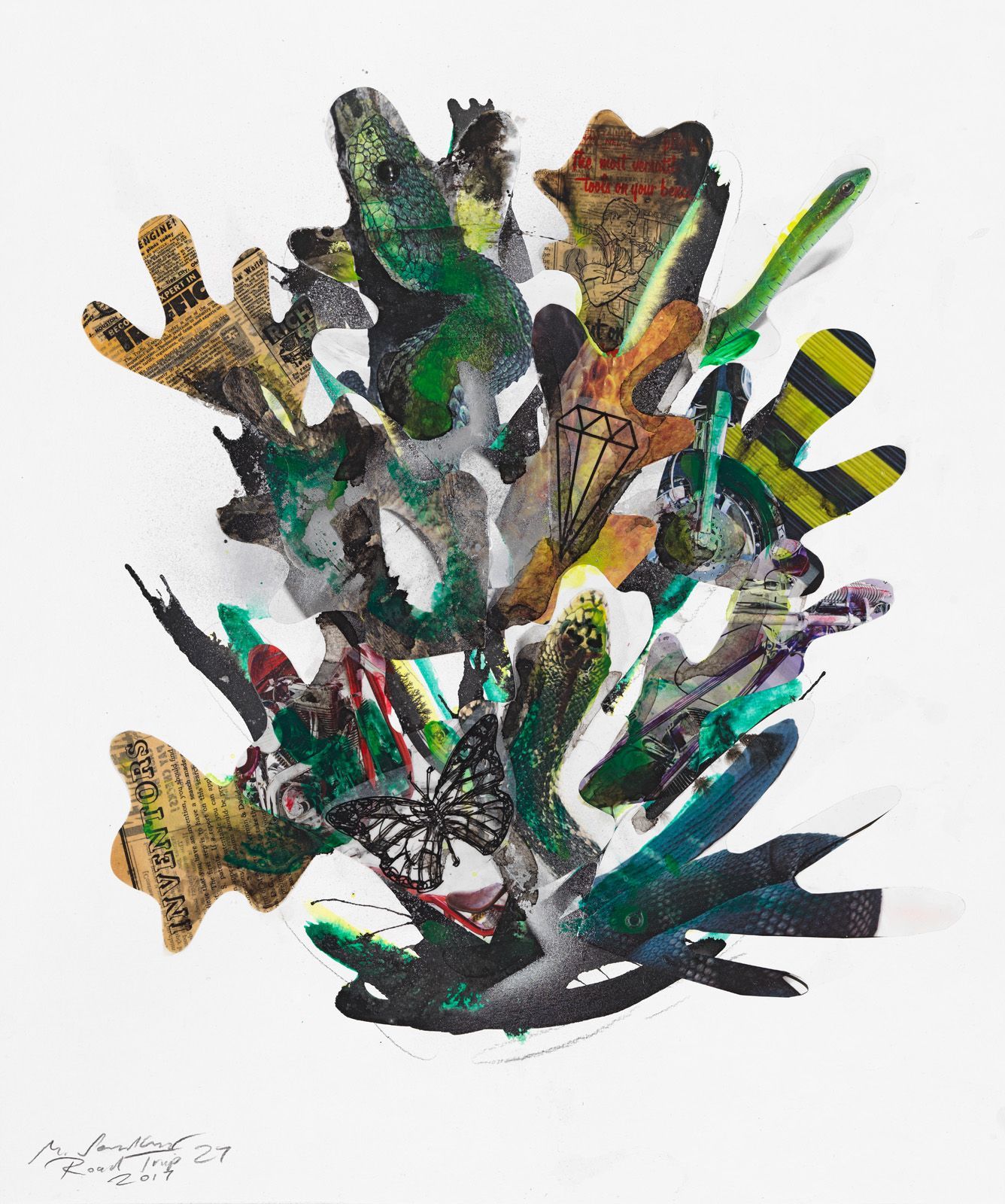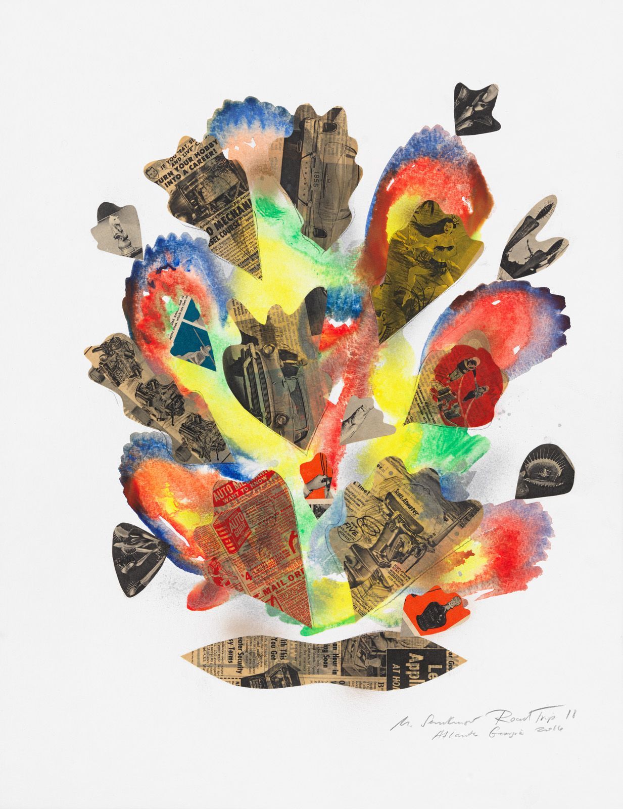 ROAD TRIP 30, 2017, COLLAGE ON WATER COLOR CAERDBOARD, 60 X 50 CM, PRIVATE COLLECTION, GERMANY.