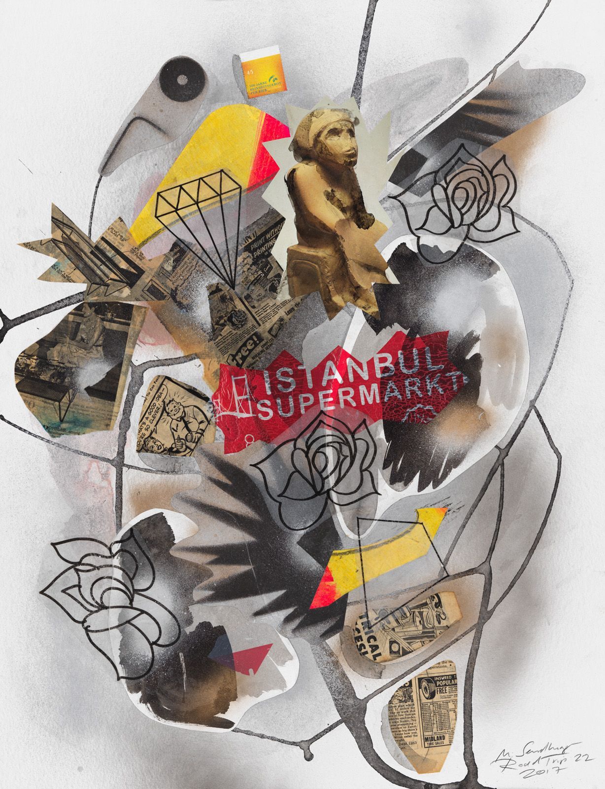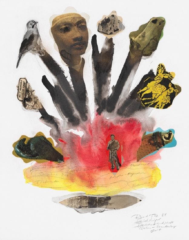 ROAD TRIP 23, 2017, COLLAGE ON WATER COLOR CAERDBOARD, 60 X 50 CM, PRIVATE COLLECTION, GERMANY.