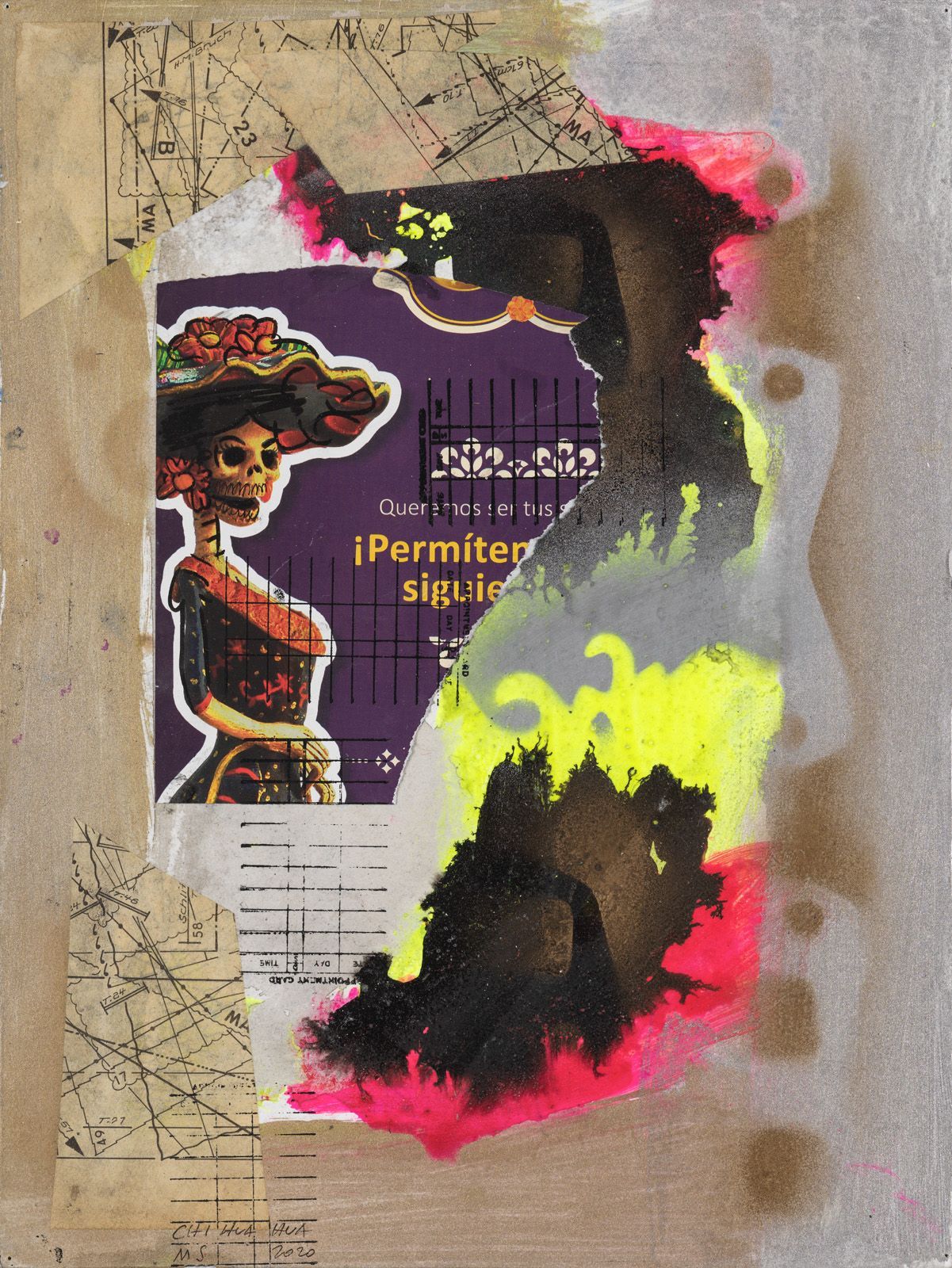 RT 3 NUEVO CHIHUAHUA, 2020, COLLAGE ON WATER COLOR CARDBOARD, 50 X 40 CM.