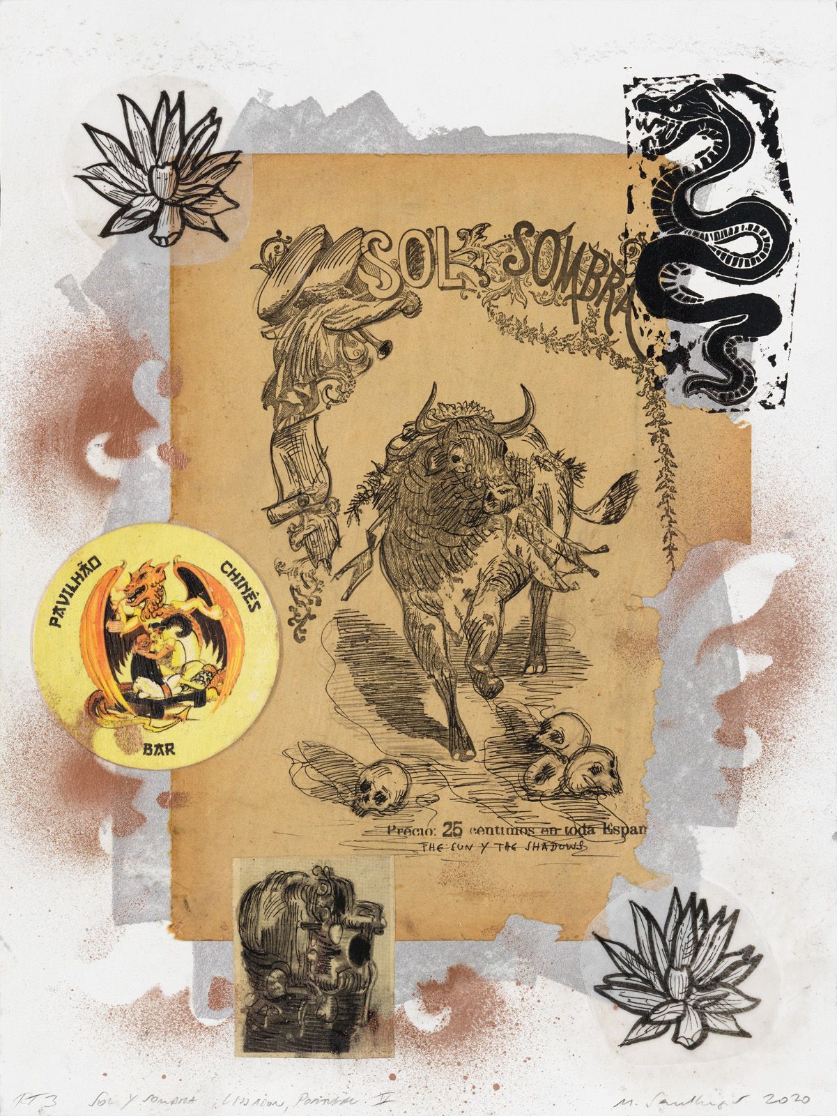 SAN PEDRO 15, 2020, COLLAGE ON WATER COLOR CARDBOARD, 40 X 30 CM, COMPANY COLLECTION, GERMANY.