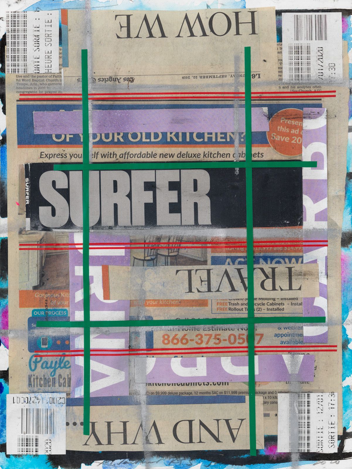 ROAD TRIP 2-22 PHOENIX SCOTTSDALE, 2019, COLLAGE ON WATER COLOR CARDBOARD, 50 X 35 CM.