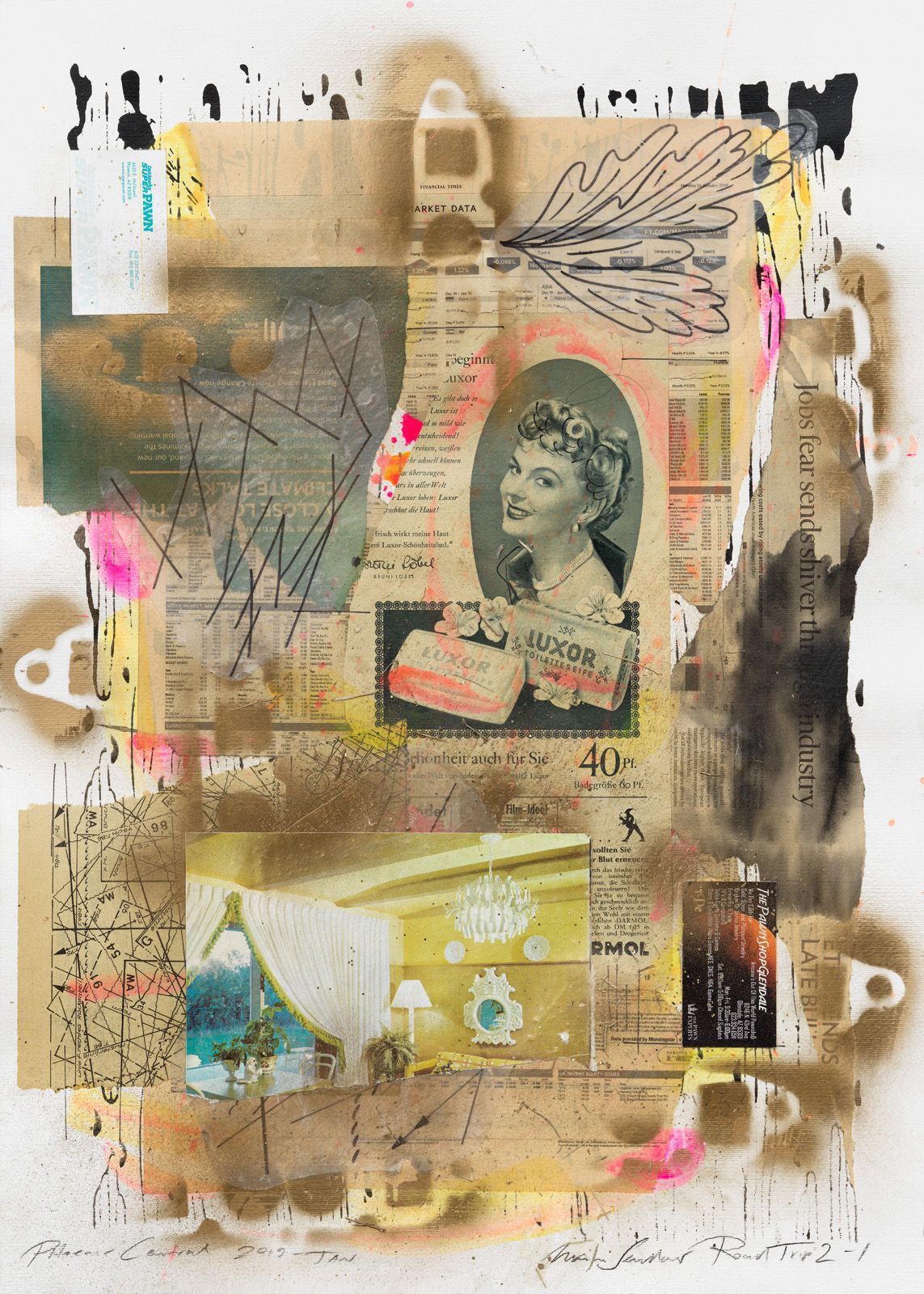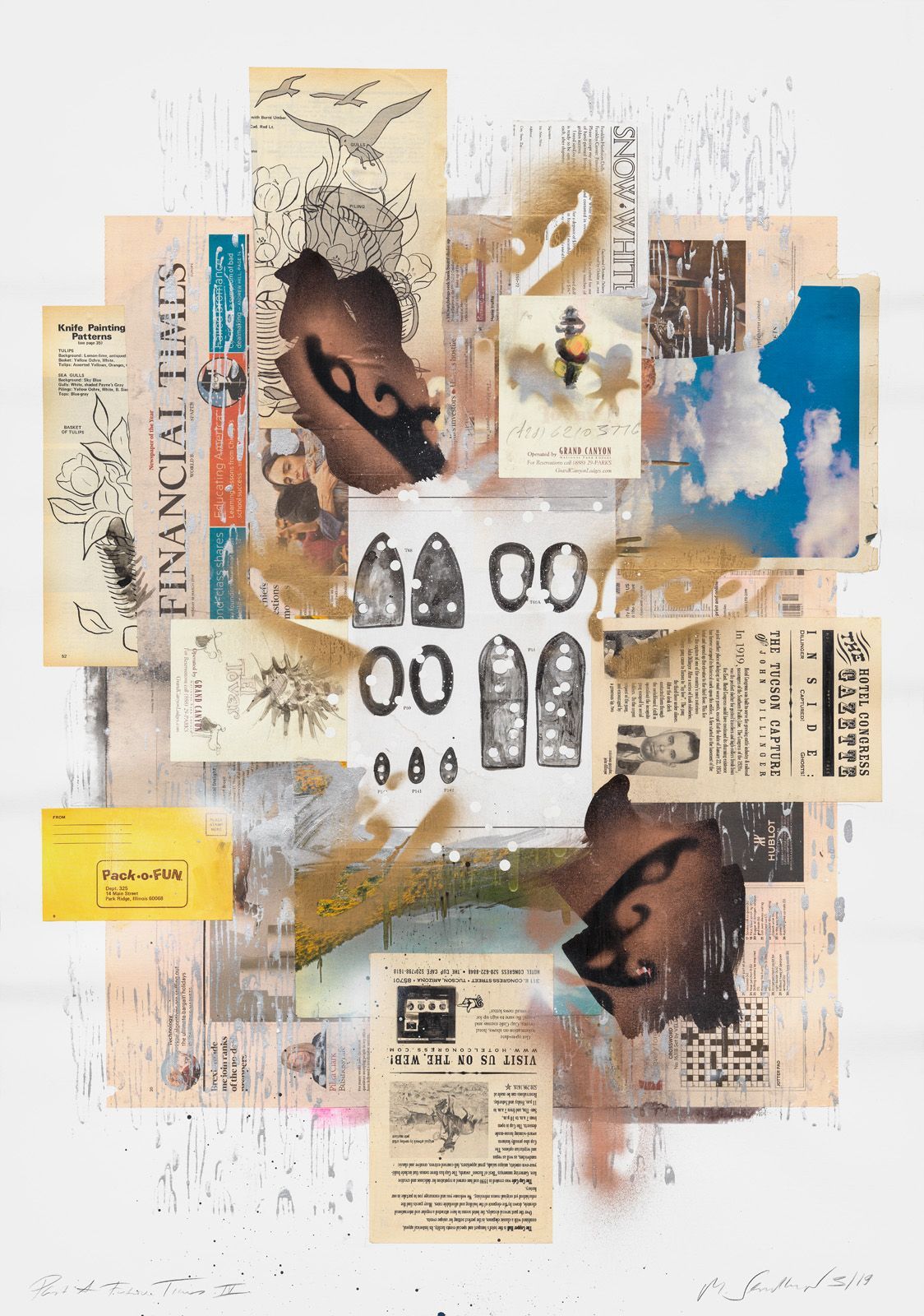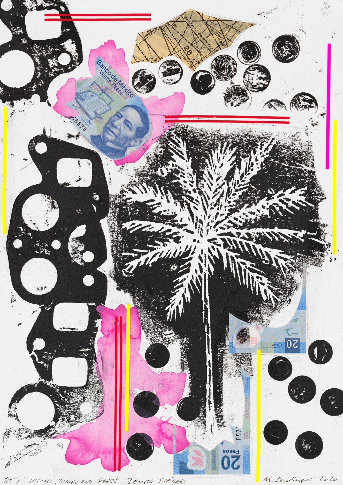 PHOENIX SCOTTSDALE RT 2-26, 2019, COLLAGE ON WATER COLOR CARDBOARD, 65 X 50 CM.