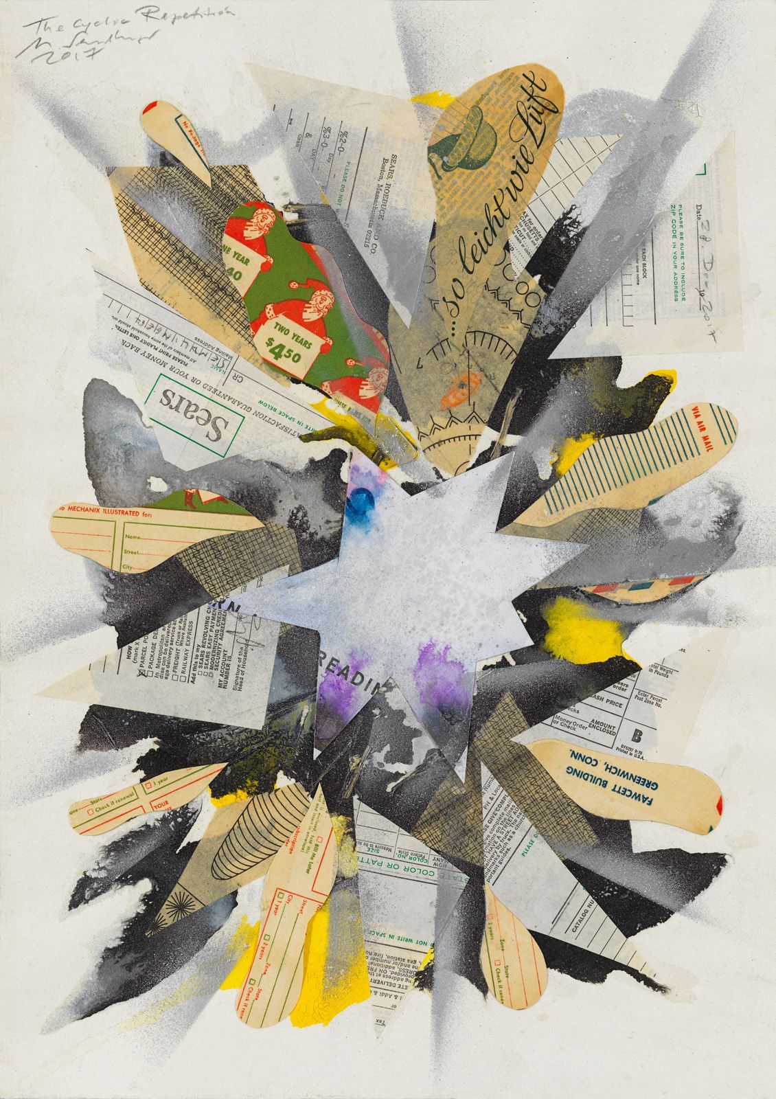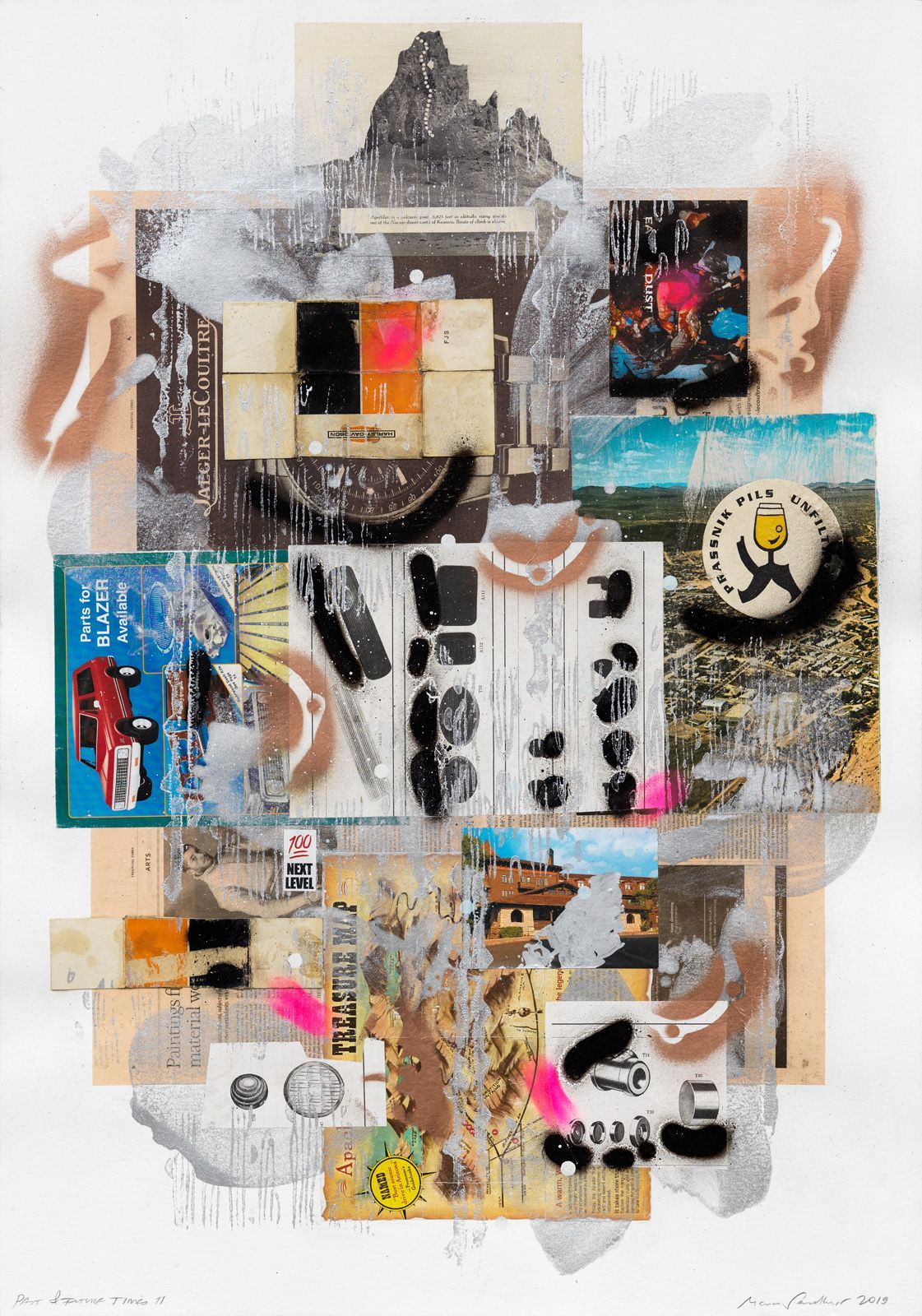 PAST & FUTURE TIMES 6, 2019 COLLAGE ON WATER COLOR CARDBOARD, 100 X 70 CM.