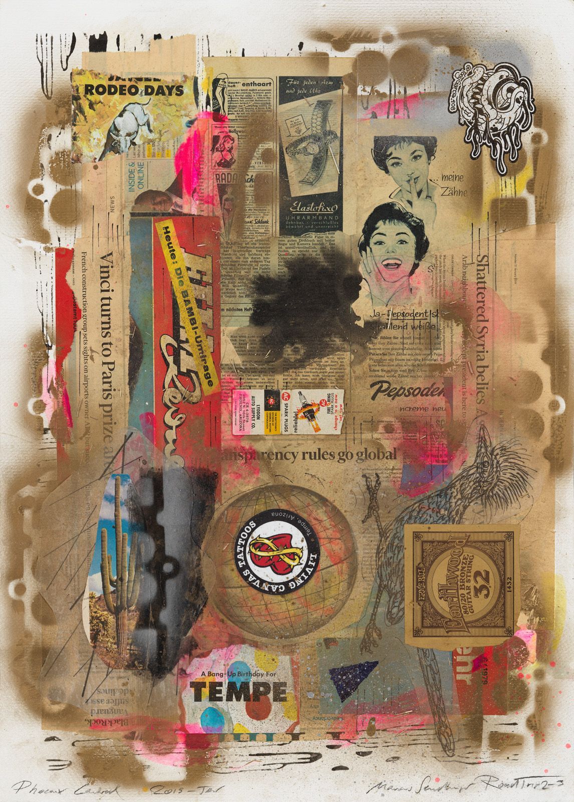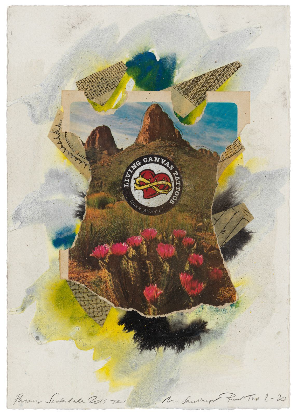 ROAD TRIP 2-17 PHOENIX SCOTTSDALE, 2019 COLLAGE ON WATER COLOR CARDBOARD, 70 X 50 CM.