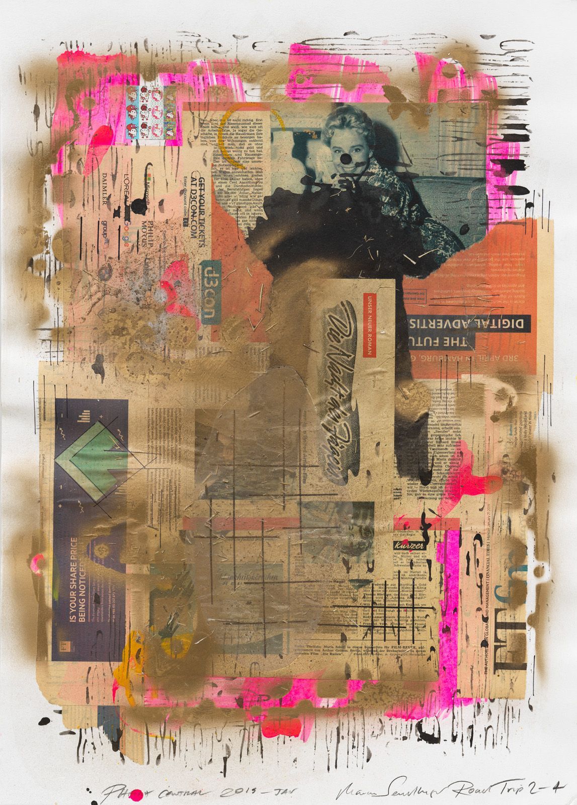 ROAD TRIP 46 GERMAN LANDSCAPE, 2017, COLLAGE ON WATER COLOR CARDBOARD, 100 X 70 CM.