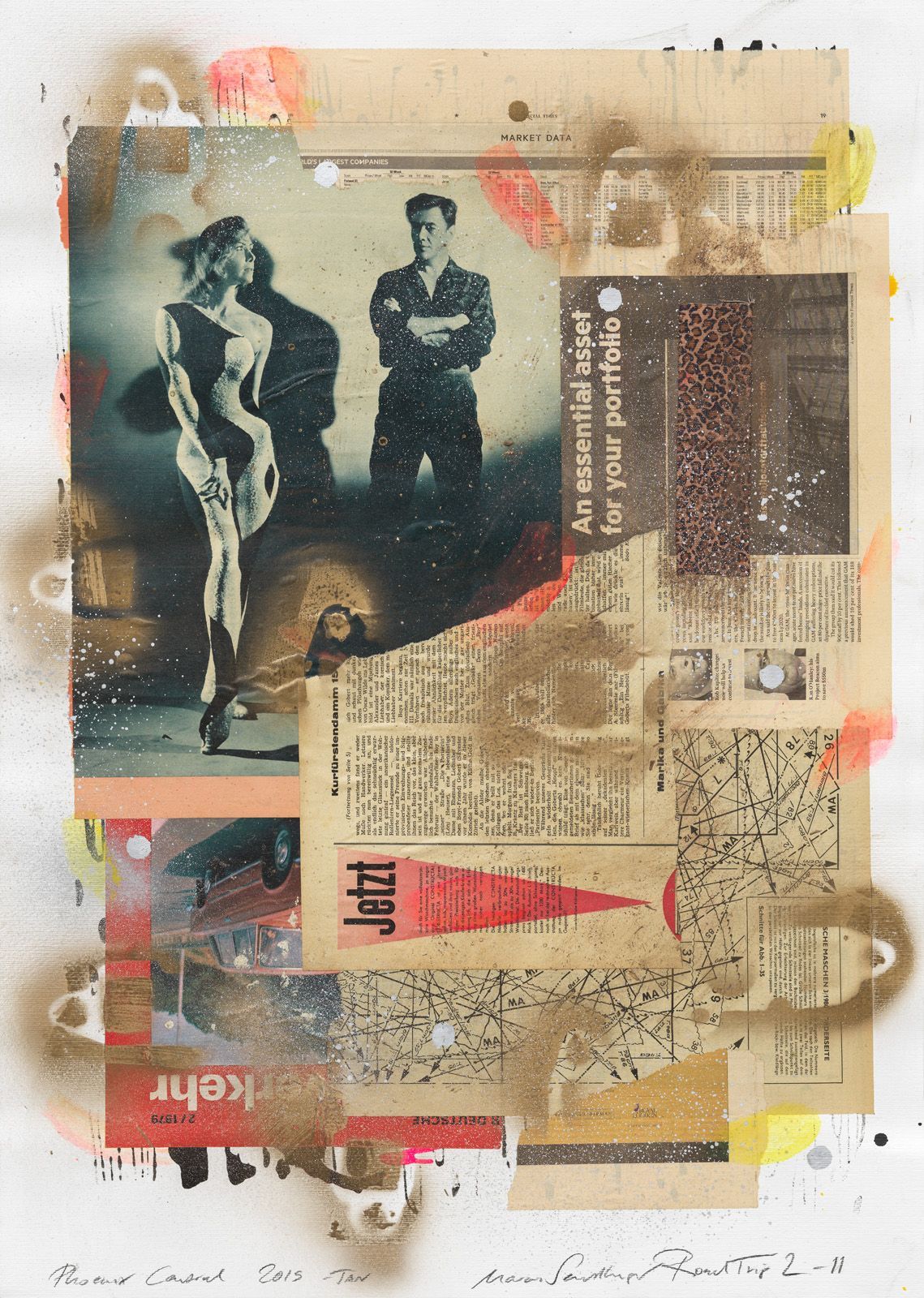GERMAN SOCIAL STRUCTURE, 2019 COLLAGE ON WATER COLOR CARDBOARD, 100 X 70 CM.