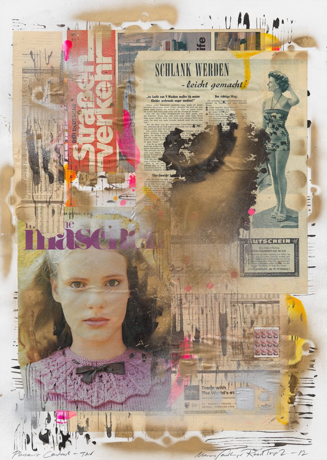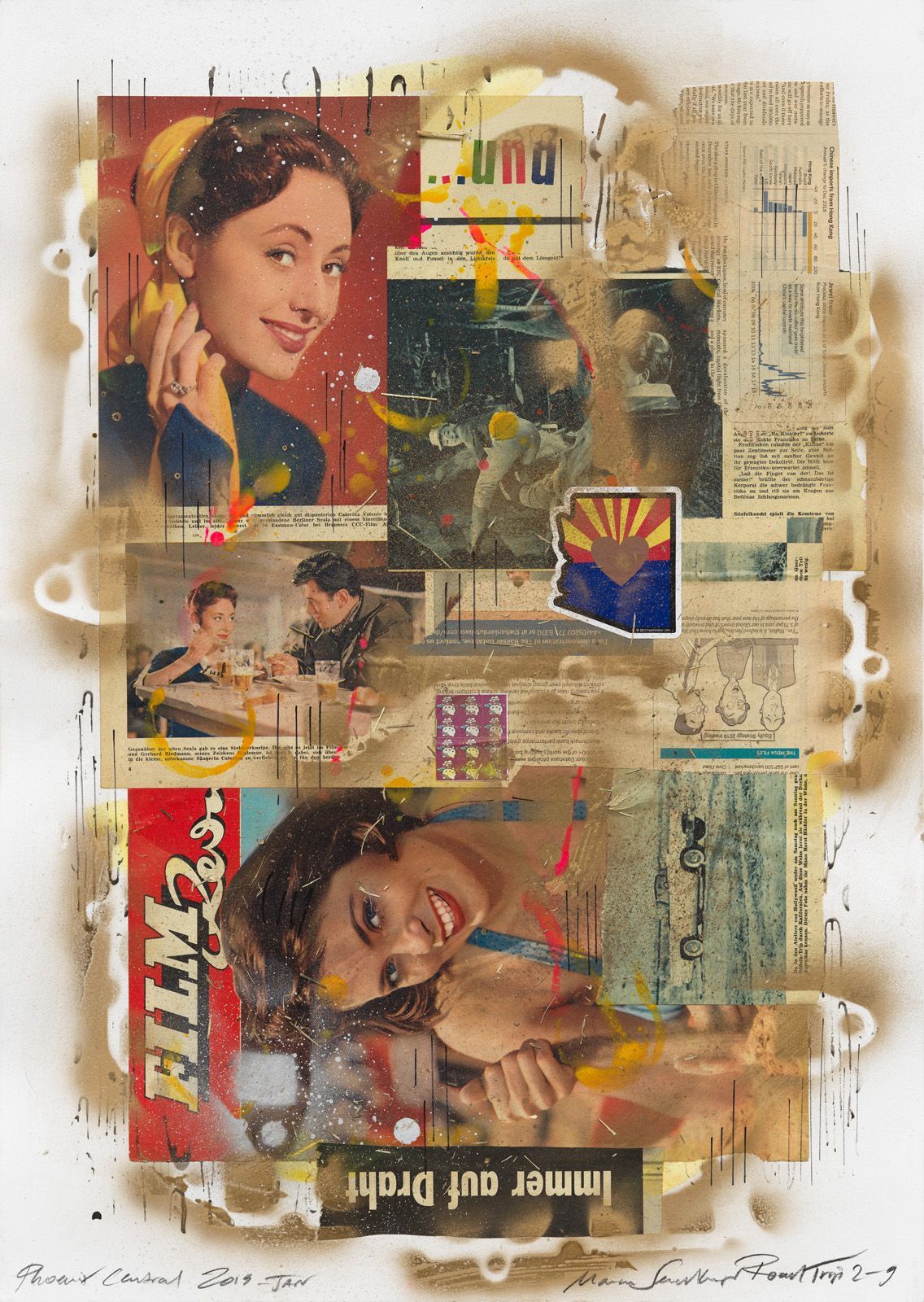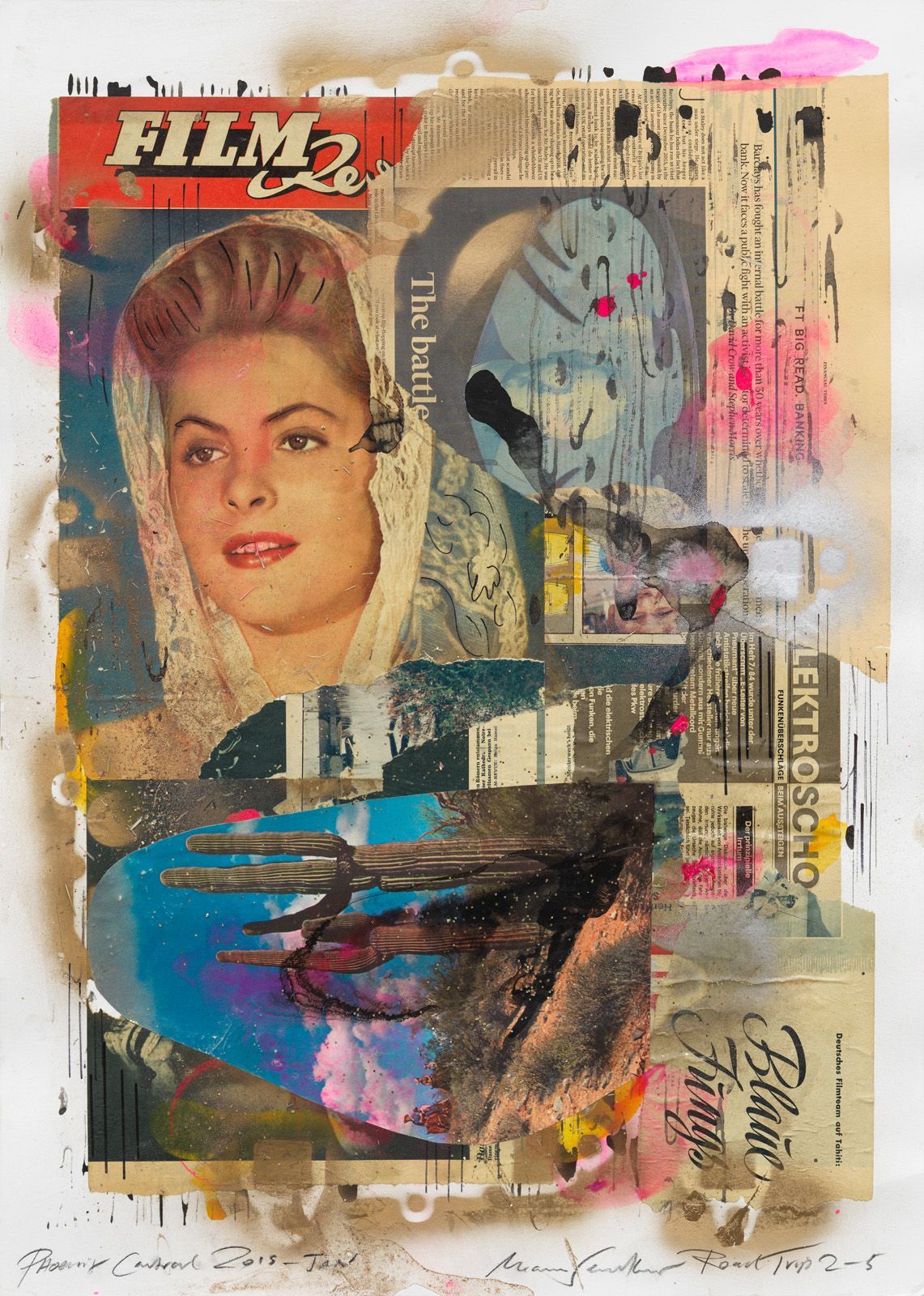 ROAD TRIP 2-23 PHOENIX SCOTTSDALE, 2019, COLLAGE ON WATER COLOR CARDBOARD, 50 X 35 CM.