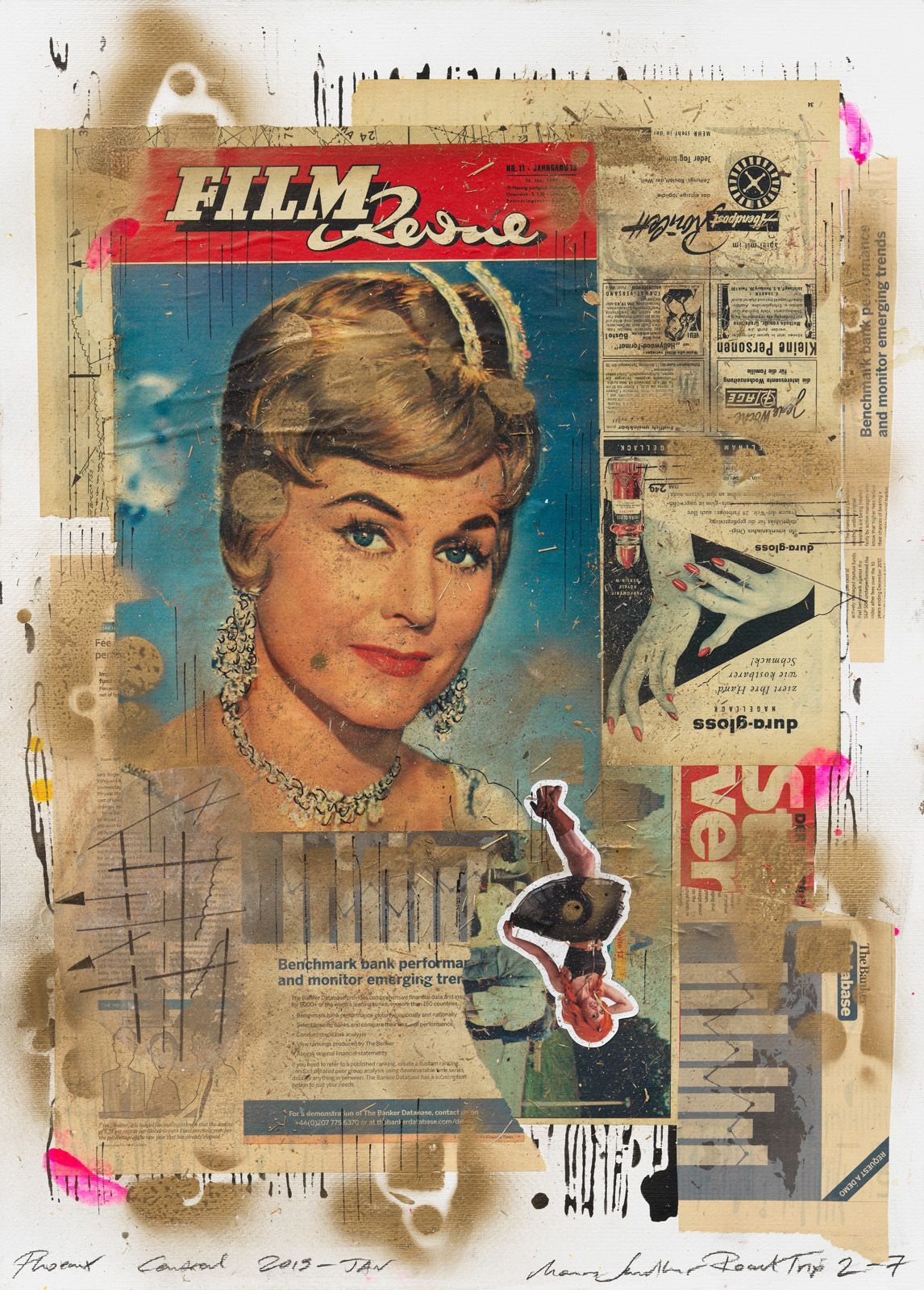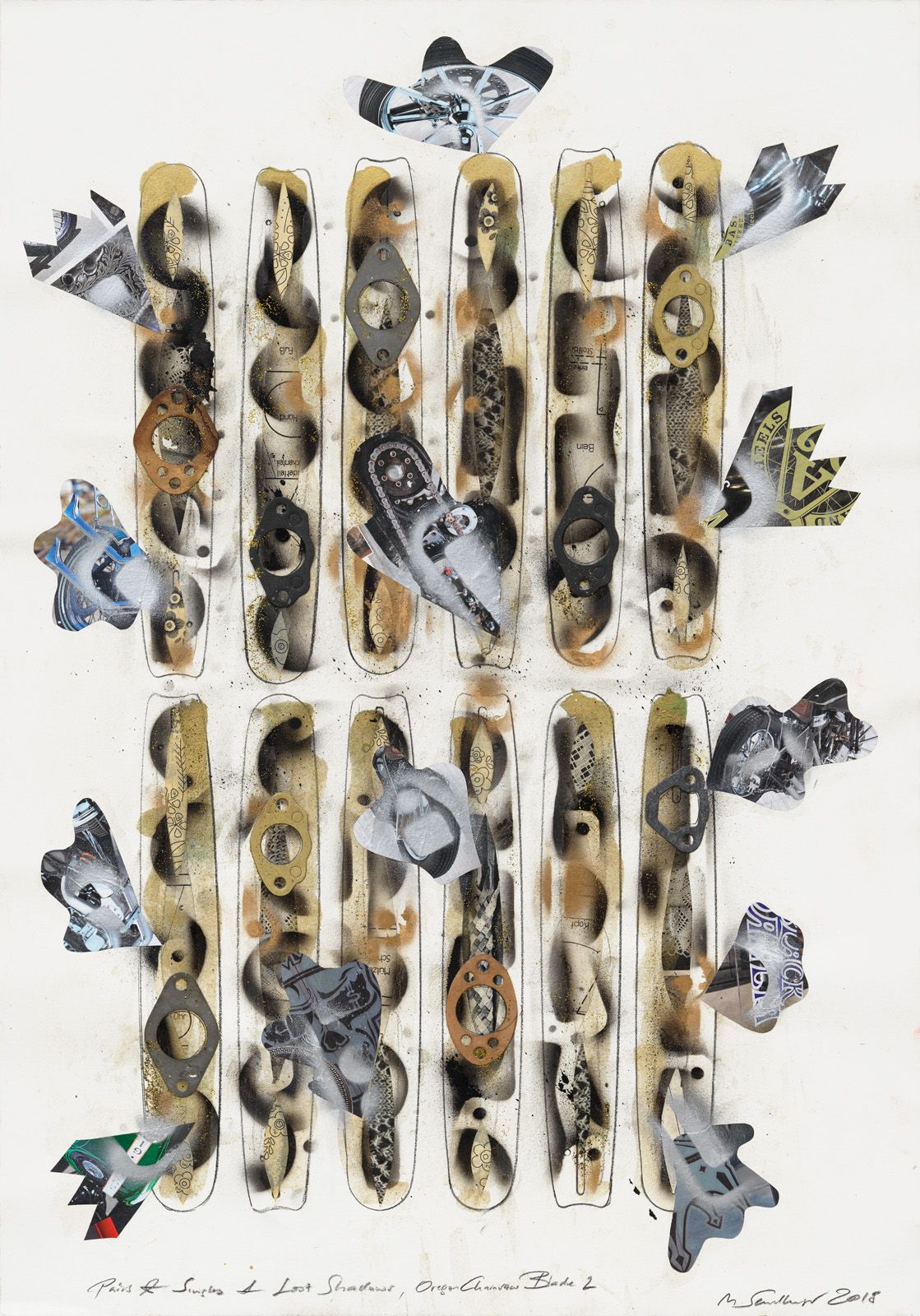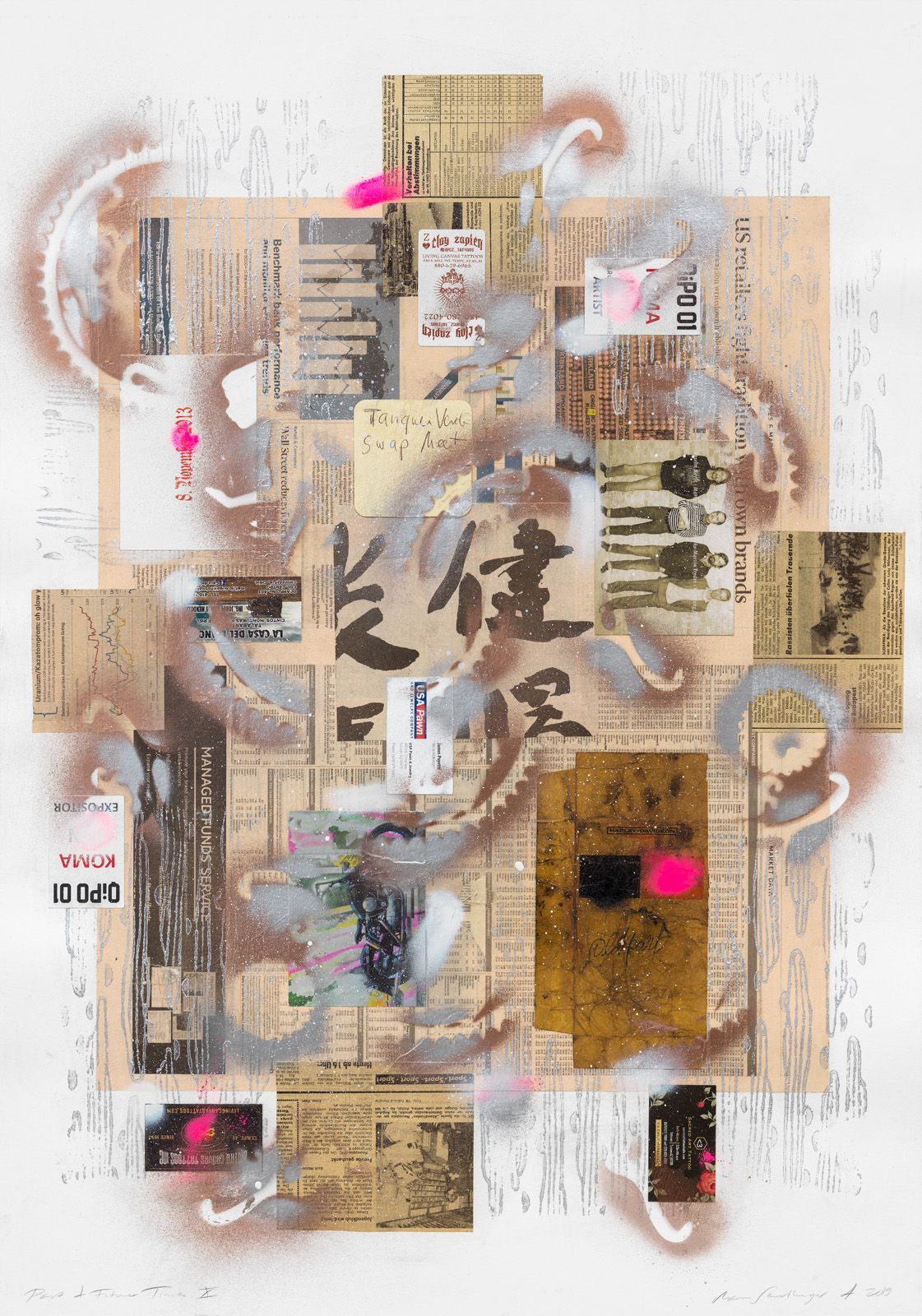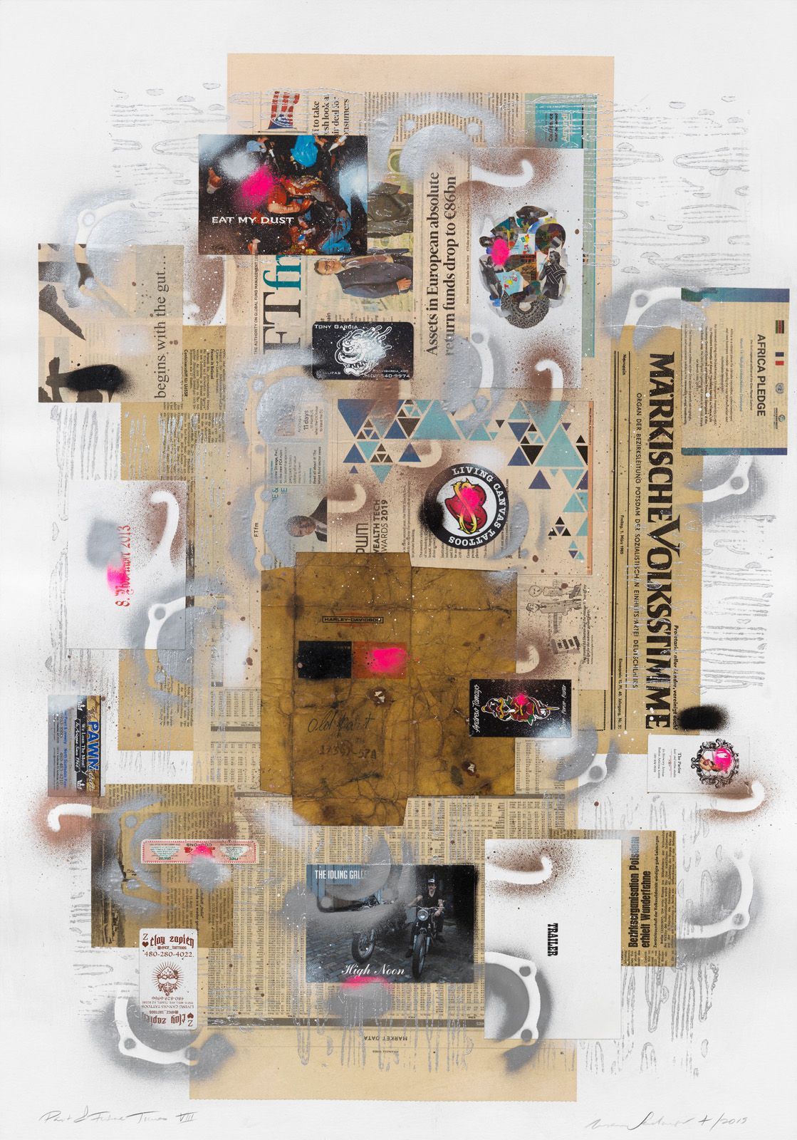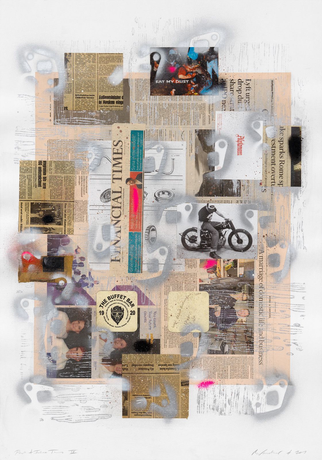 PAST & FUTURE TIMES 5, 2019 COLLAGE ON WATER COLOR CARDBOARD, 100 X 70 CM.
