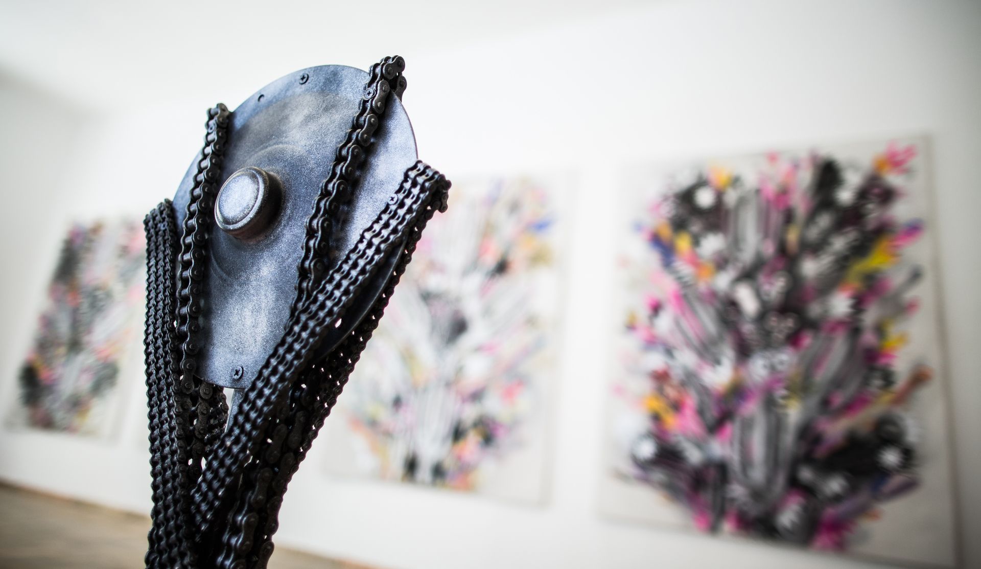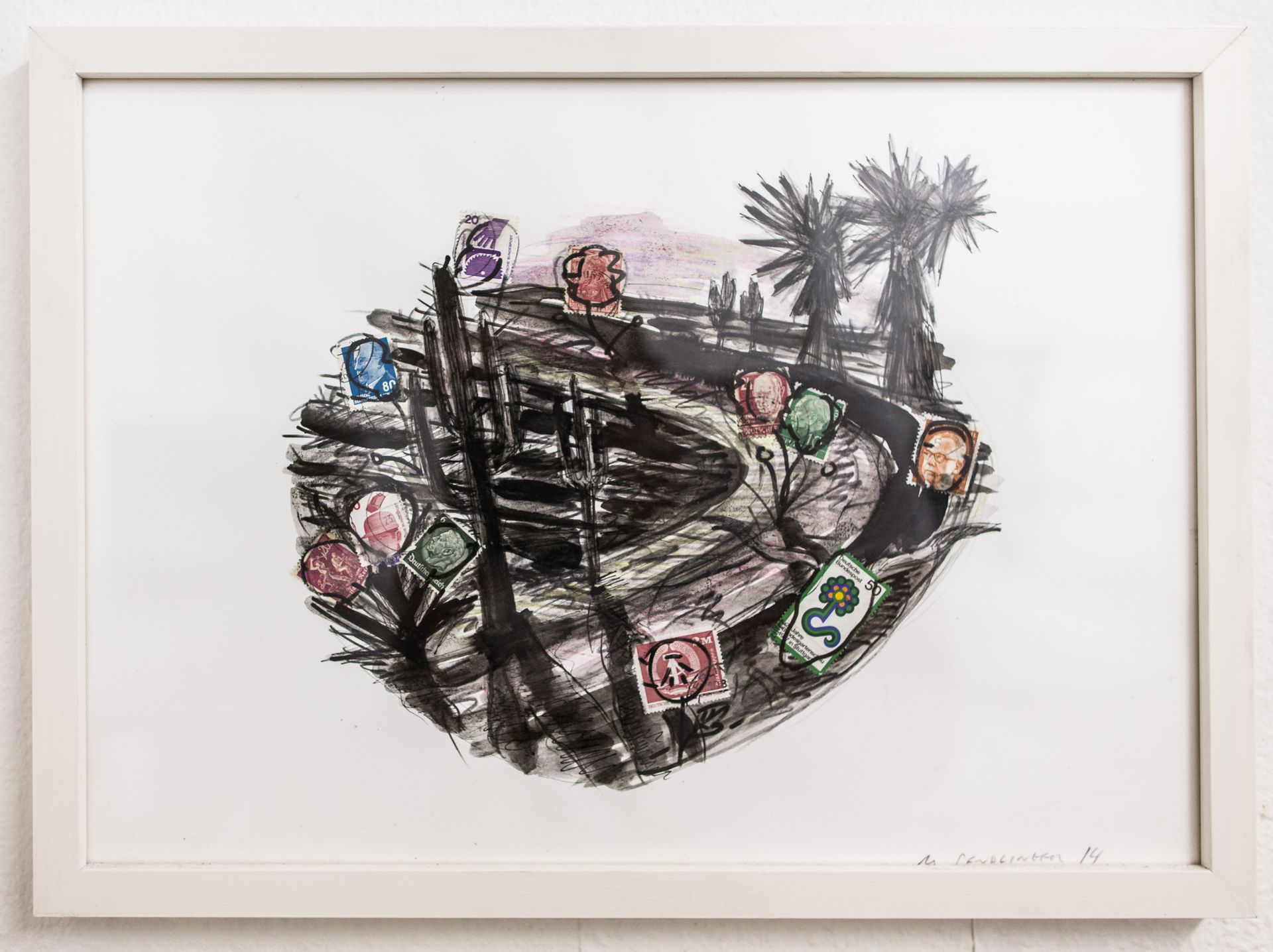 DESERT FLOWER 4, 2014, ACRYLIC, COLLAGE, LACQUER ON HEAVY COTTON, 180 X 140 CM. PRIVATE COLLECTION, GERMANY.