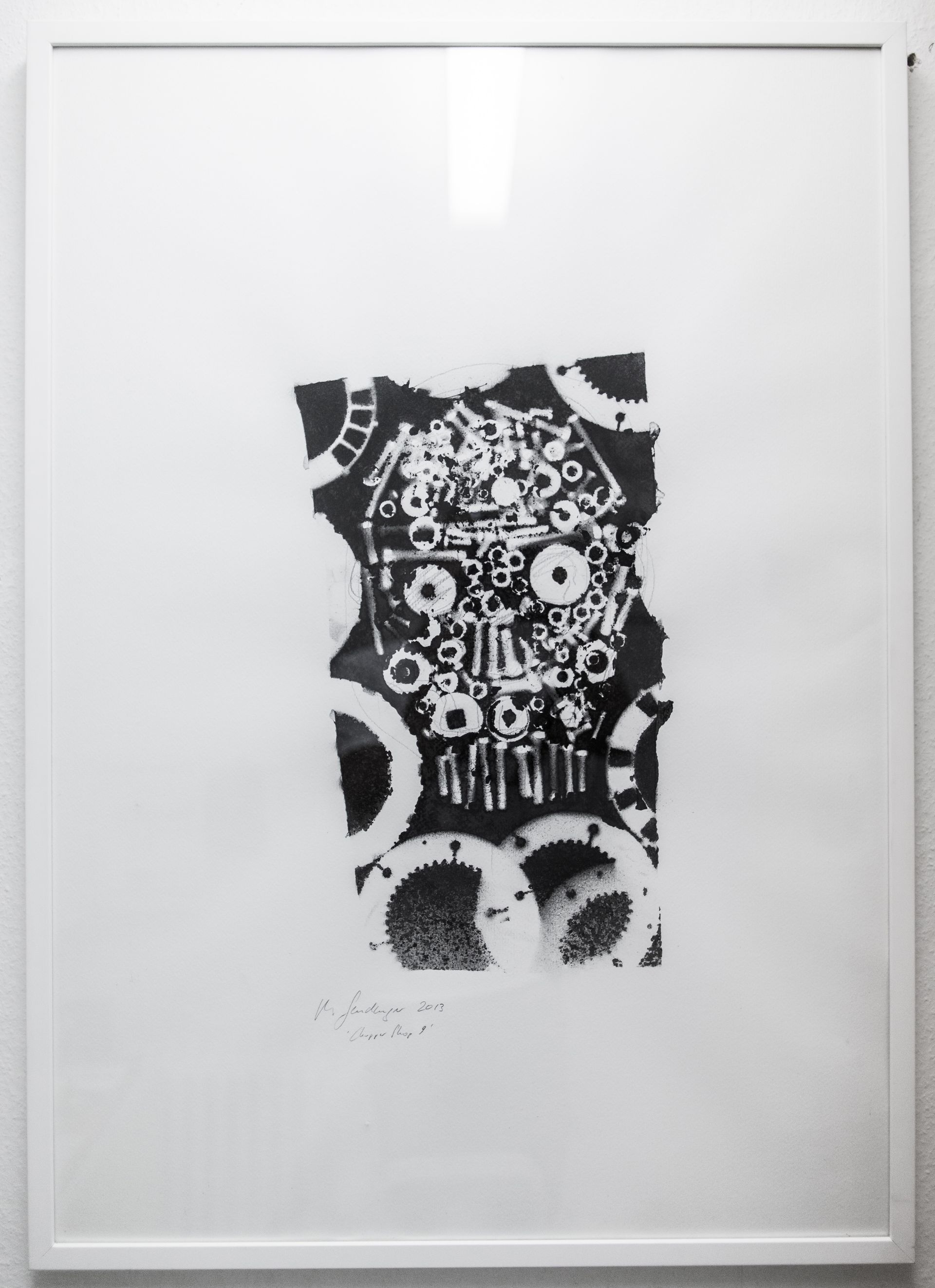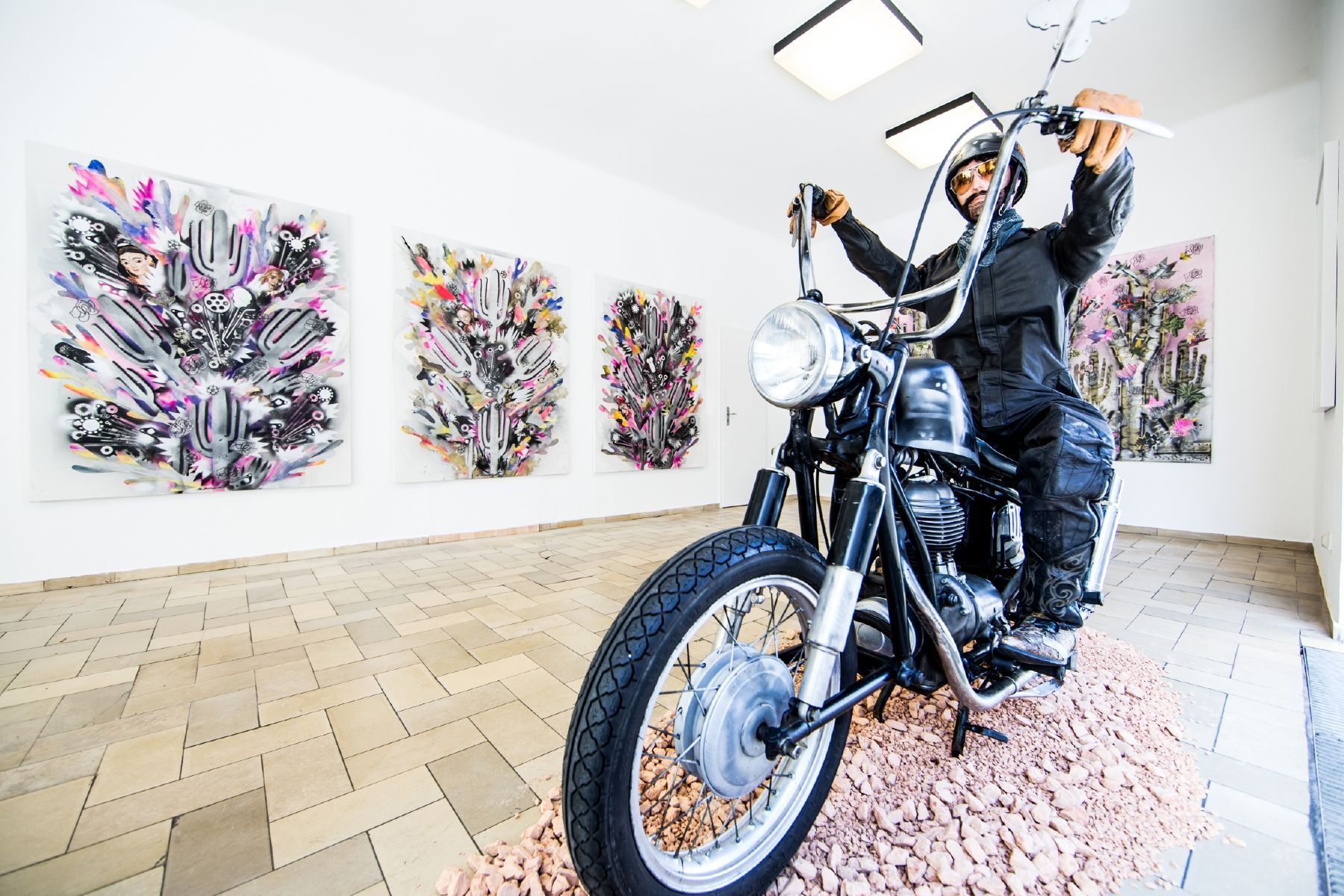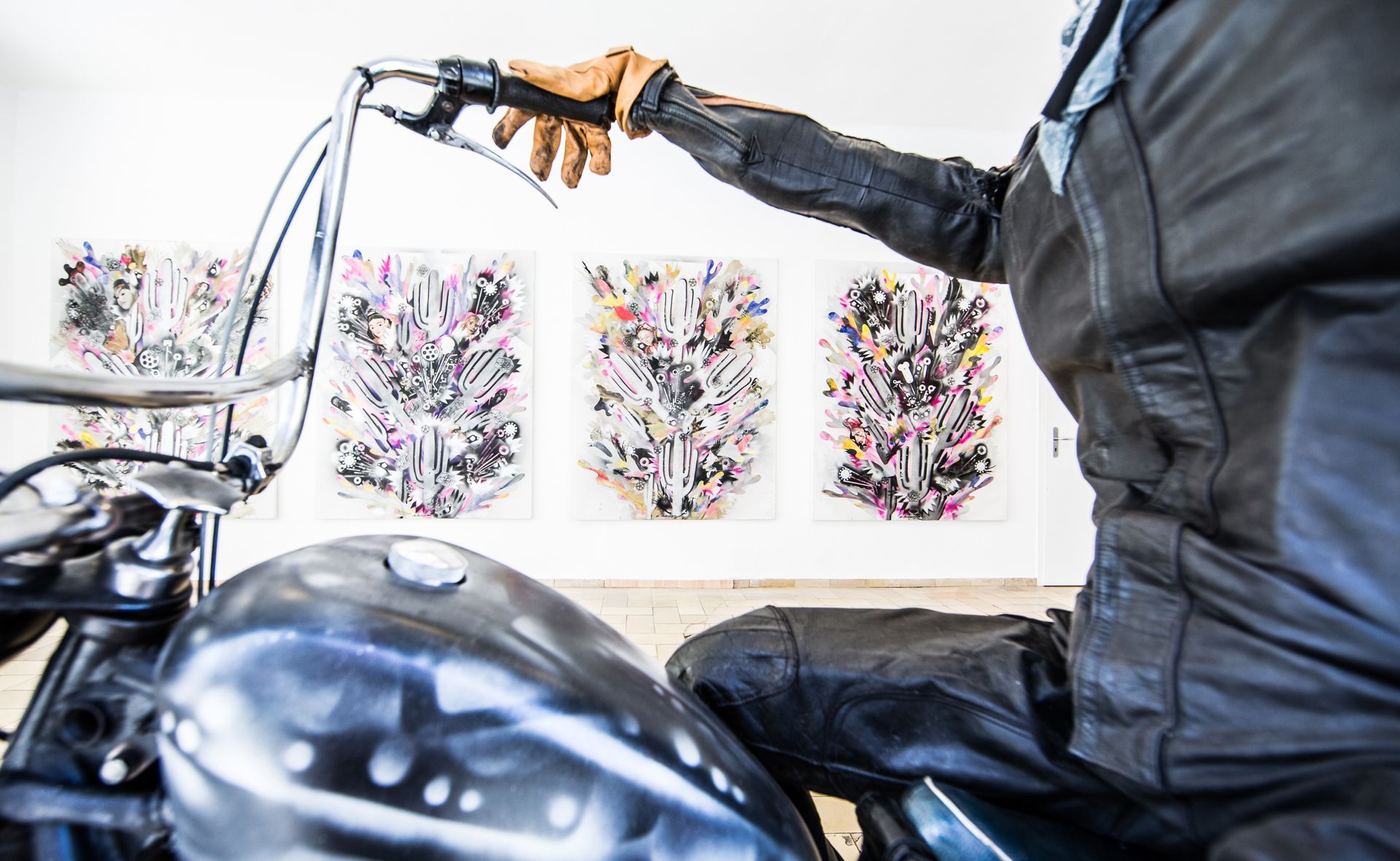 DESERT FLOWER 2, 2014, ACRYLIC, COLLAGE, LACQUER ON HEAVY COTTON, 180 X 140 CM. SERIES OF 4. ALL PRIVATE COLLECTION, GERMANY.